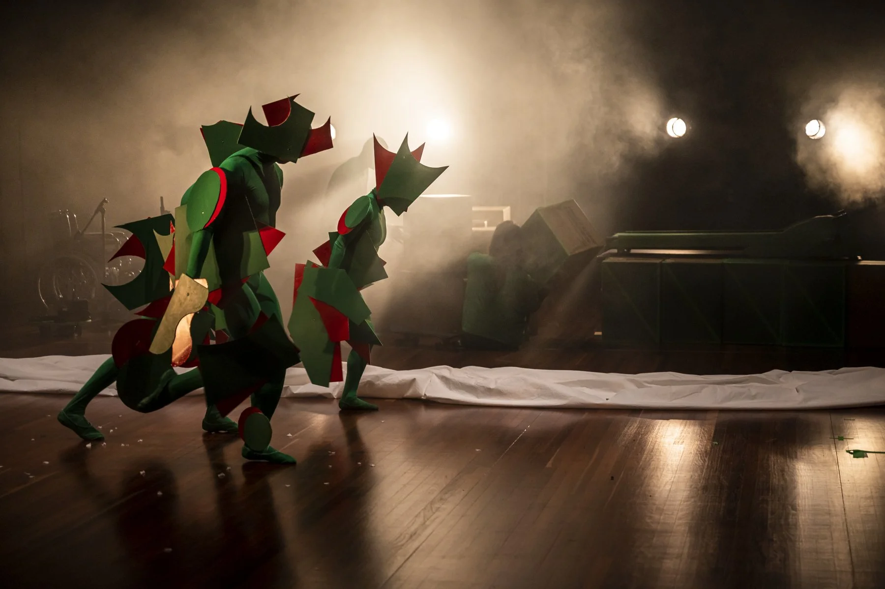 Choreography, dramaturgy, sculpture and digital elements work in sync to conjure a world that is shifting, unstable and constantly surprising. Expectations are constructed and then subverted as the familiar limits and meanings of the human body begin to crumble beneath us.